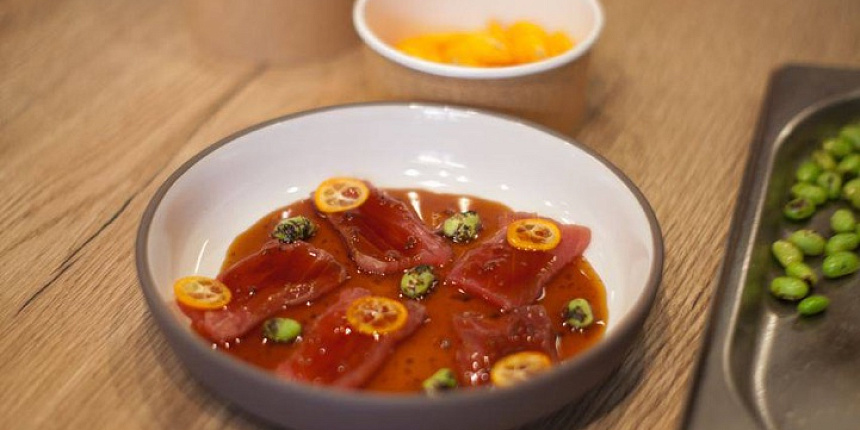 - Тунец атаки с соусом юдзу